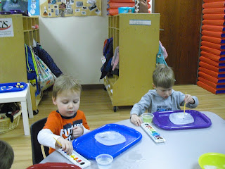 Learning about ice melting, using rock salt, table salt, and water color. We could see the craters as the ice melted from the rock salt.